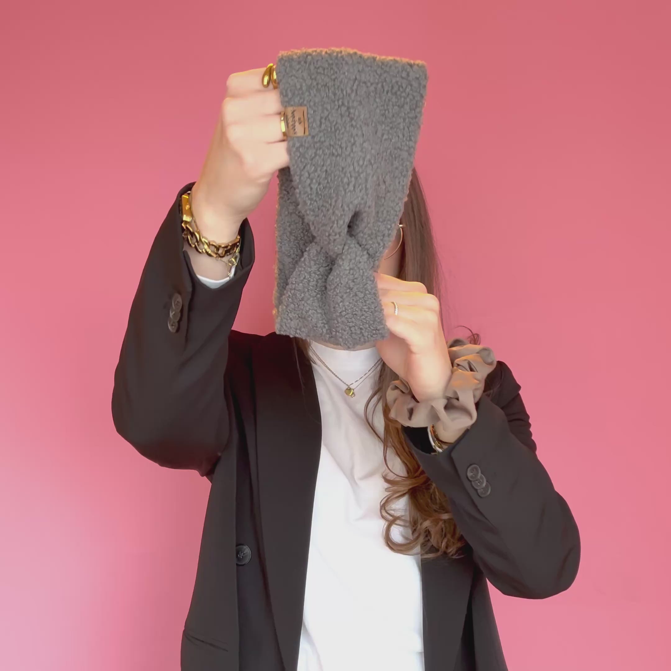 Basic Haarband - Teddy Grau
