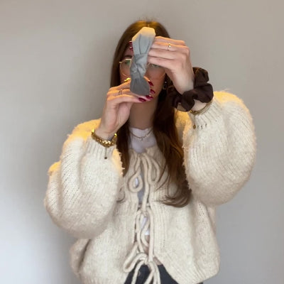 Ein zarter oder doch durch den Knoten nicht zu zarter Haarreif. Man kann den Haarreif auch etwas enger oder weiter biegen, dafür den Haarreif mit dem Föhn erwärmen und dann langsam und vorsichtig biegen. Unsere Haarreifen sind extra weich und elastisch somit drücken sie nicht und sind am Kopf super angenehm. Endlich kein drücken mehr.