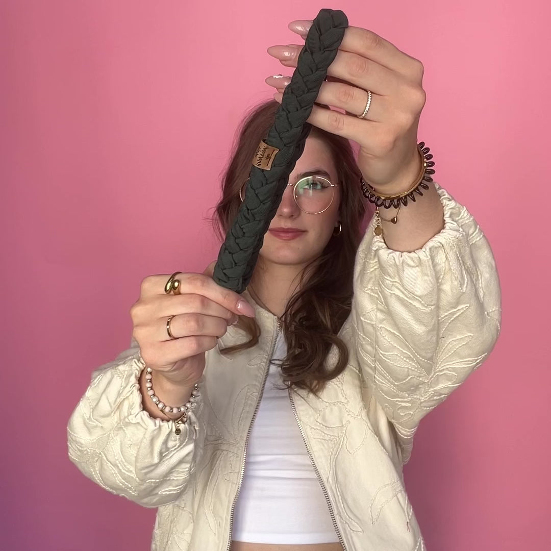 Ob locker über dem Haar, unter dem Zopf, als stylisches Haargummi oder zum Einwickeln deiner Haare – dieses Haarband kann einfach alles!