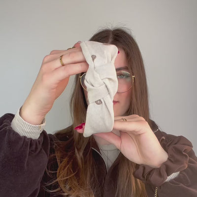 Unser breitester Haarreif „Leyla“ ist ideal für alle, die voluminöses oder lockiges Haar haben und ein Statement setzen möchten. Mit seinem markanten Knoten und extra breiter Form ist er ein echter Hingucker. Trotz seiner Größe sitzt er super bequem am Kopf – weich und elastisch, ganz ohne Drücken. Perfekt für langes und angenehmes Tragen!