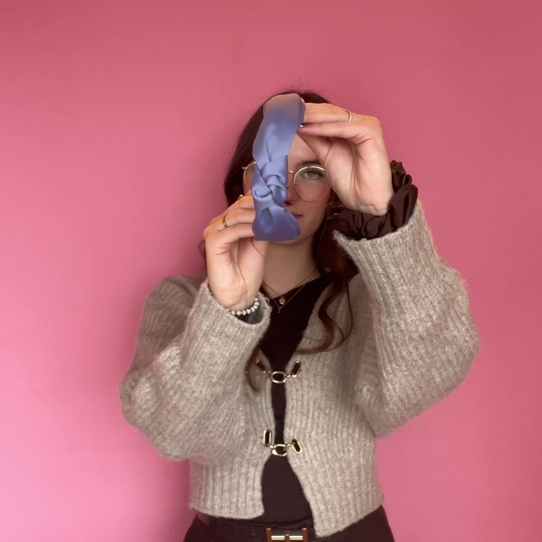 Unser zartester Knoten Haarreif. Durch das Satin schön dezent und leicht. Man kann den Haarreif auch etwas enger oder weiter biegen, dafür den Haarreif mit dem Föhn erwärmen und dann langsam und vorsichtig biegen. Unsere Haarreifen sind extra weich und elastisch somit drücken sie nicht und sind am Kopf super angenehm. Endlich kein drücken mehr.